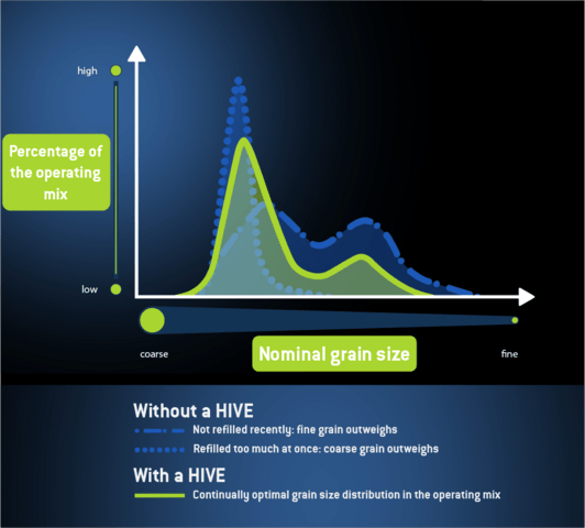 One of the foundations for a reliable blasting result is a constant operating mixture of abrasive grains of different sizes with an optimal grain size distribution between the new size and the separating size set in the separator.